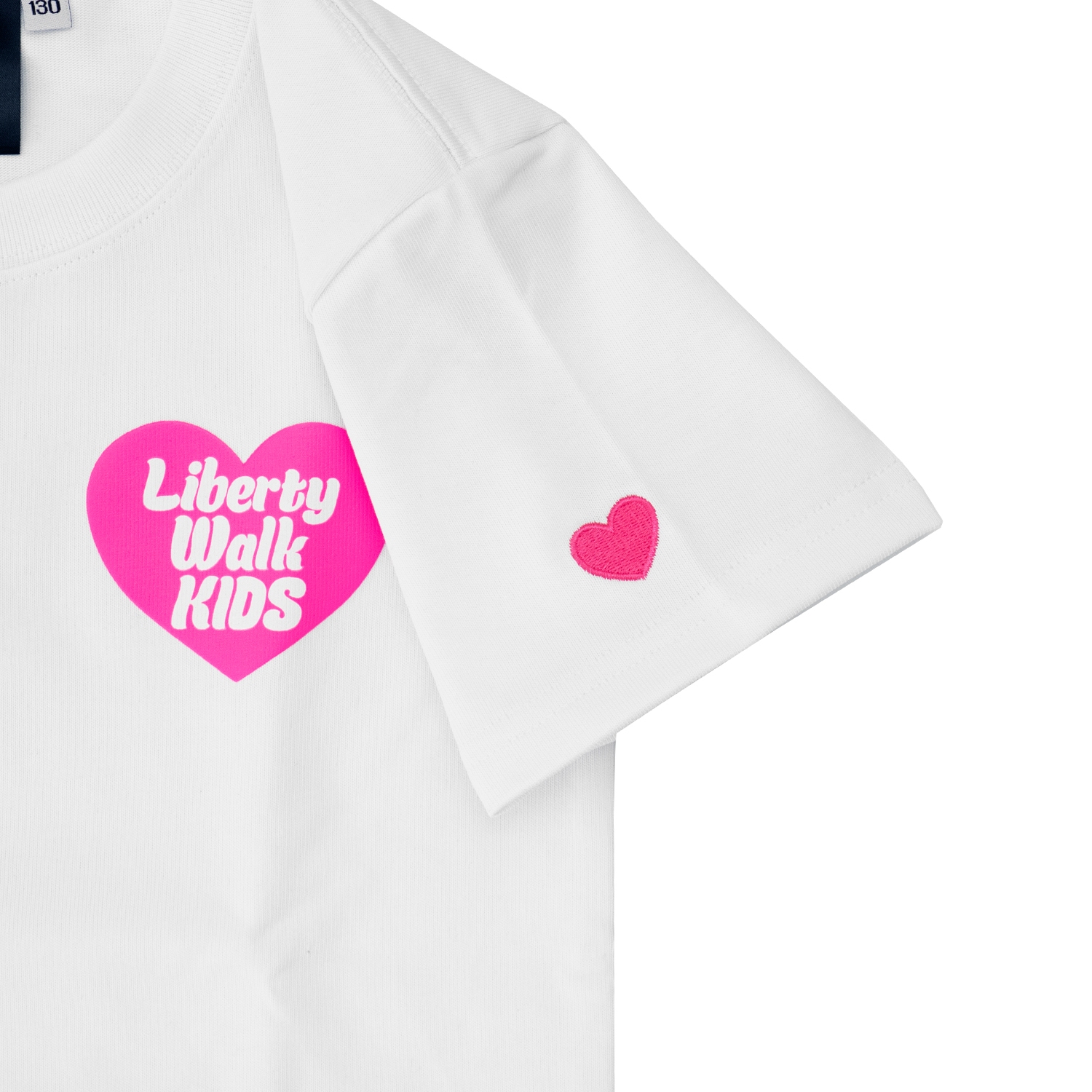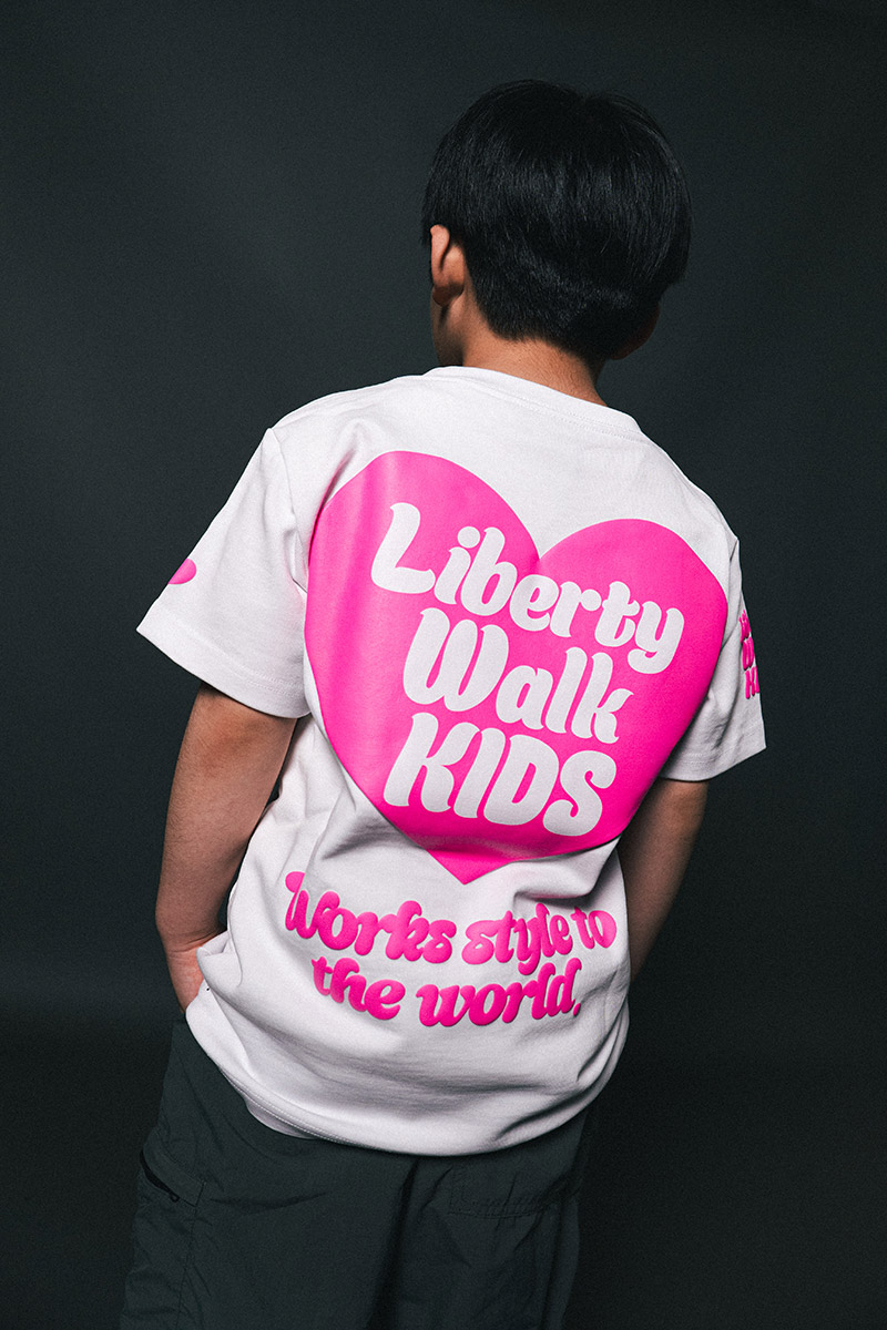 -フロントはシンプルに仕上げ、背面にはハートモチーフの大胆なグラフィックを配したキッズサイズのTシャツ。