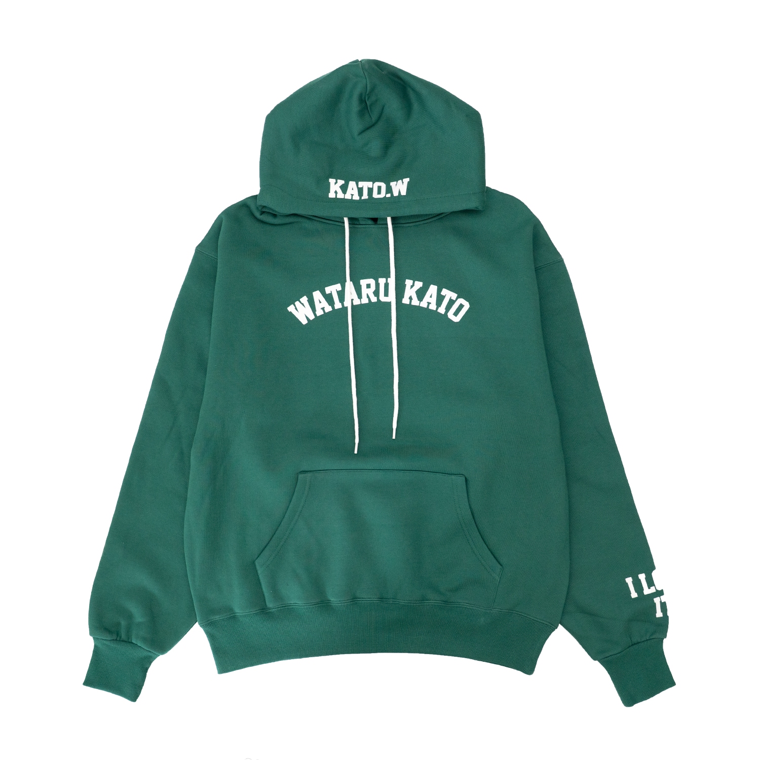 裏起毛仕様で暖かく、着心地の良さにこだわったフーディー。フロントには「WATARU KATO」のロゴを配置し、バックにはデフォルメ「WATARU KATO」を大胆にプリント。